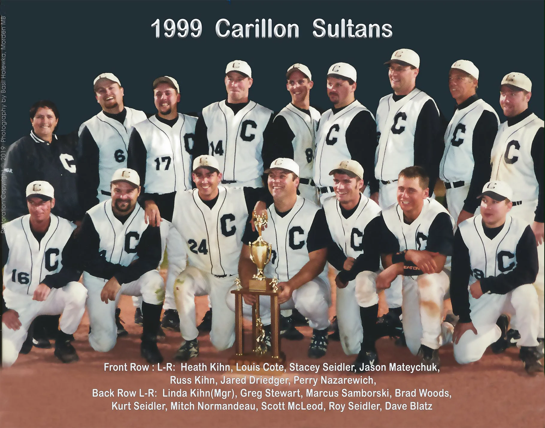 The Carillon Sultans played their home games in Friedensfeld. For the most part, the players were local products of the Carillon junior team, and the majority of the players continued their involvement in Carillon baseball long after their playing days. The Sultans competed in the Winnipeg Senior League, which became very strong after the Redboine League folded in 1998. The Sultans won the league championships in 1998, 1999, 2001, and 2002. In 1999, they also won silver at the Western Canadian AA Championships.